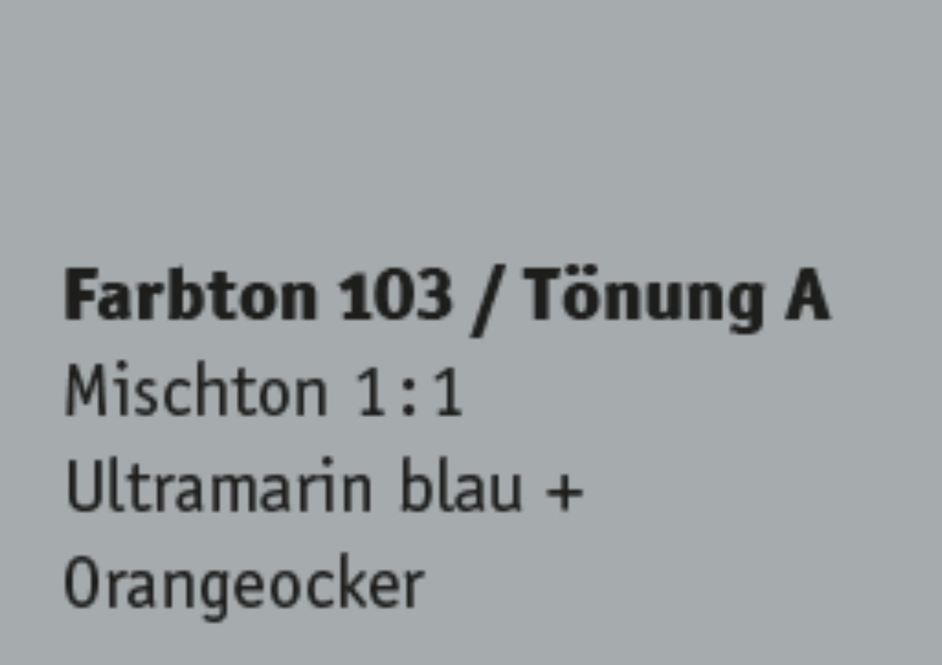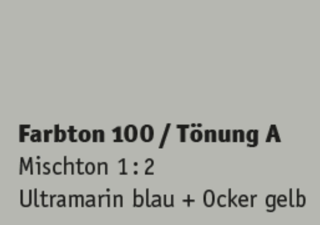 Unser Beispiel zeigt Sumpfkalkfarbe als Mischton aus Spinellgrün und Eisenoxidschwarz, 1:1, Tönung B.